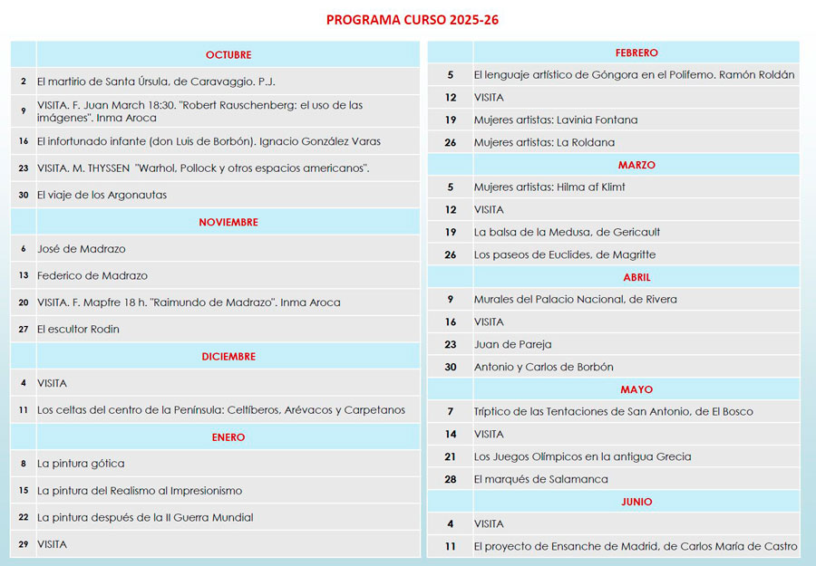 El programa se compone de monográficos, impartidos por profesores licenciados en Historia del Arte, que reflejan cómo las corrientes artísticas se dejan influir por los acontecimientos de su época.