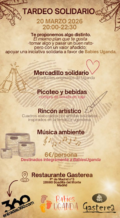El próximo viernes 20 de marzo de 2026, entre las 20.00 y las 22.30, la ONG Babies Uganda organiza en el restaurante Gasterea un tardeo con un objetivo especial: apoyar su labor en Uganda.